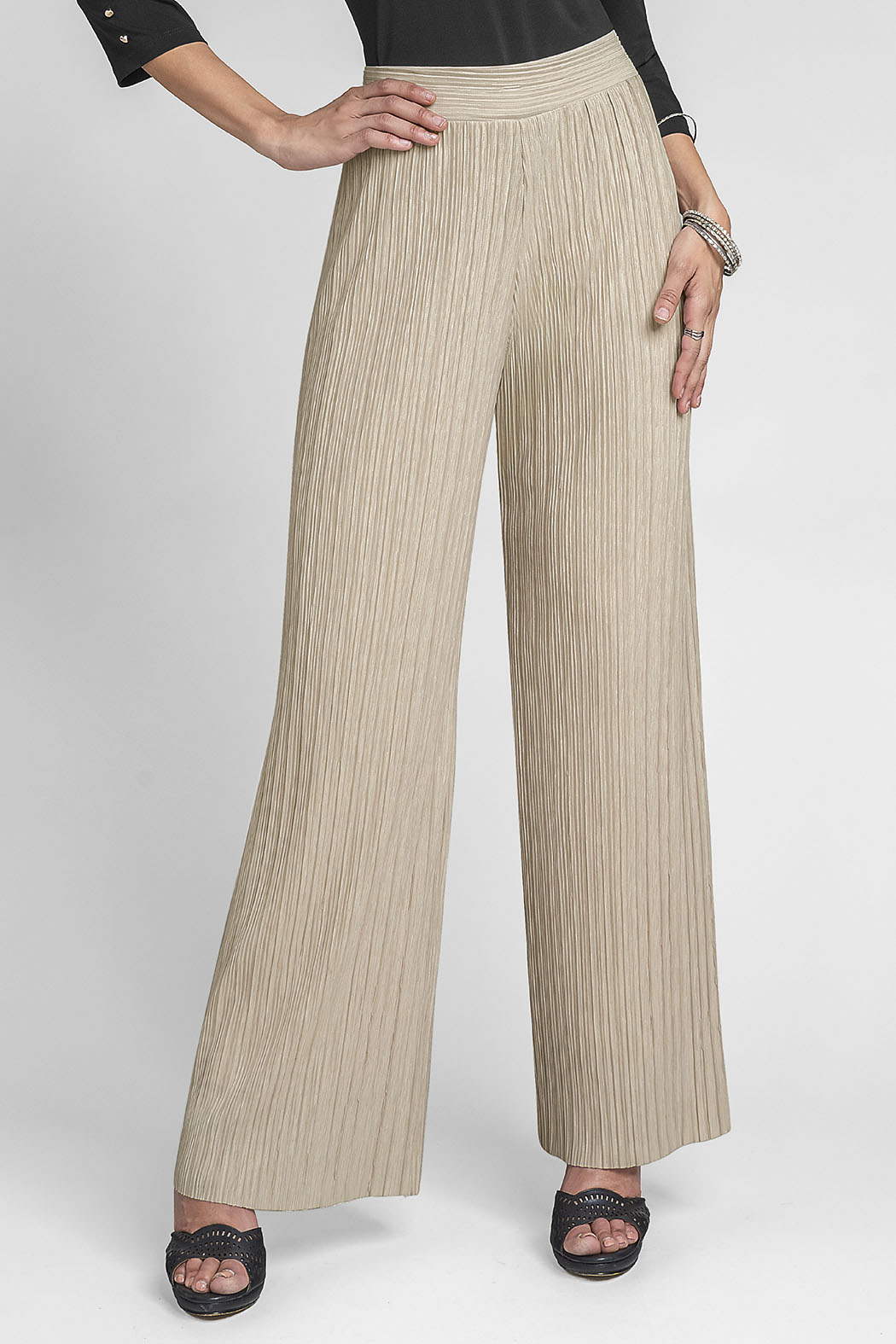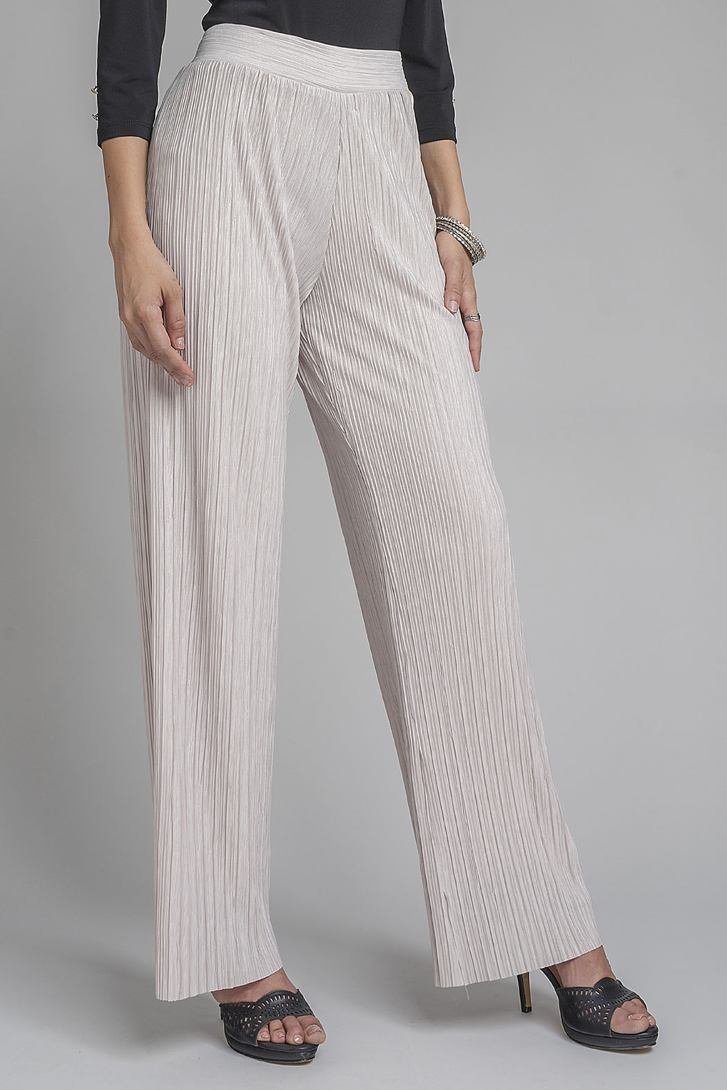 Pantalón De Textura Que Destaca Por Su Acabado Plisado En Toda La Pieza, Lo Que Genera Un Movimiento Espectacular Y Una Caída Ligera Que No Se Arruga. Presenta Un Diseño De Talle Alto Con Una Pretina Ancha Y Elástica Que Define La Cintura Cómodamente Sin Oprimir. Su Corte De Pierna Ancha Y Fluida En Un Suave Tono Lo Convierte En La Pieza Perfecta Para Eventos De Día O Vacaciones.