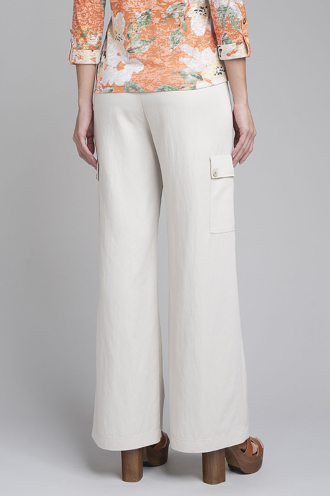 Pantalón De Pierna Ancha En Un Sofisticado Tono Crema Que Se Adaptan A Cualquier Ocasión. Su Diseño Destaca Por Incluir Bolsillos Tipo Cargo Laterales Con Solapa Y Botón, Además De Un Cinturón De La Misma Tela Que Define La Silueta Y Añade Un Toque Artesanal. Confeccionados Con Una Caída Fluida Y Un Acabado Impecable, Estos Pantalones Son La Elección Perfecta Para Quienes Buscan Comodidad Sin Sacrificar El Estilo, Ideales Para Elevar Un Look De Oficina O Disfrutar De Una Salida Casual Con Distinción.