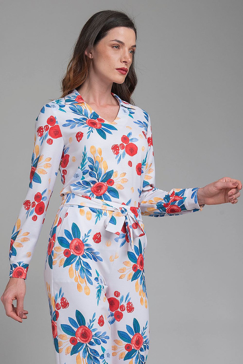 Blusa Estampada De Manga Larga Y Cuello Camisero