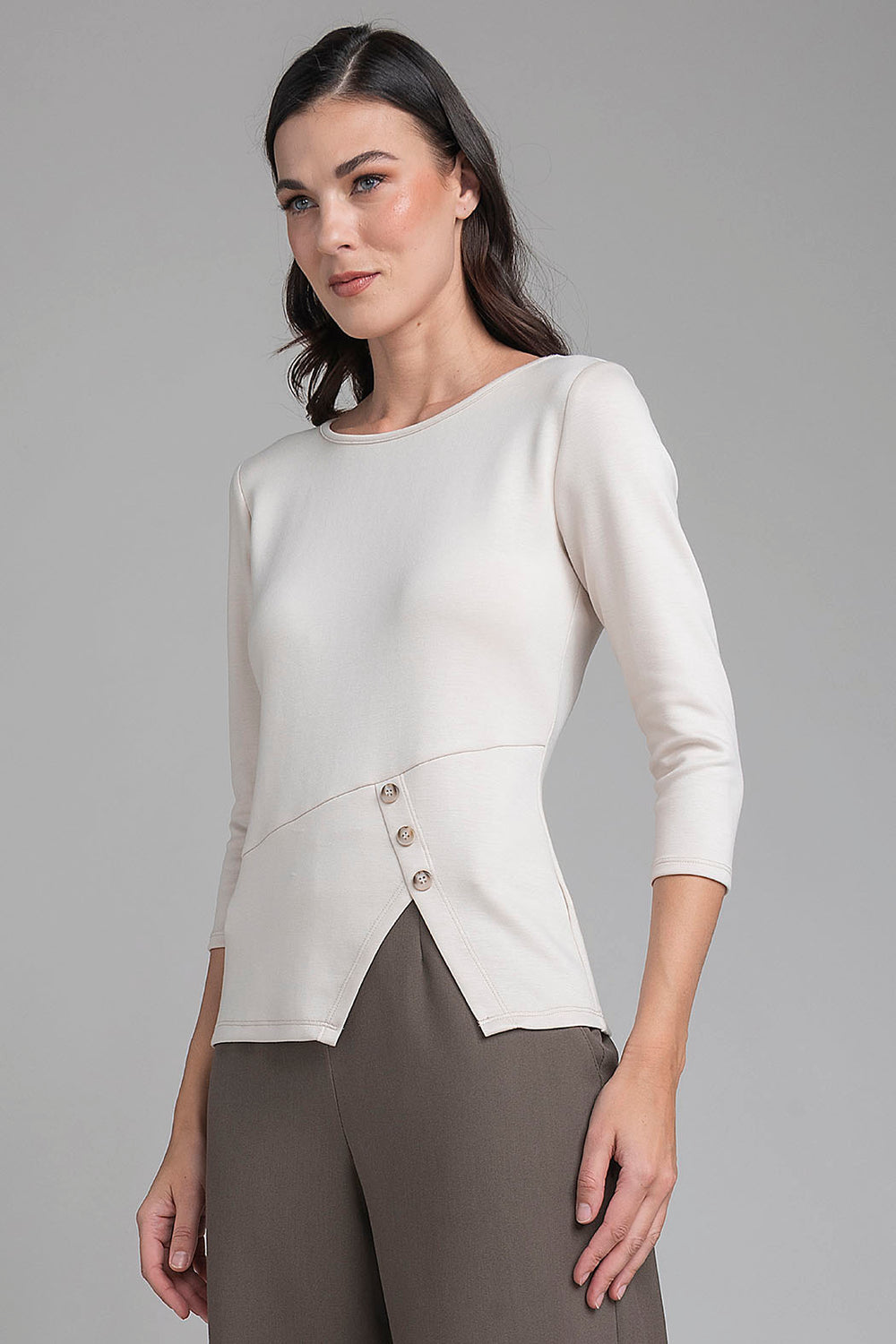 Blusa Con Manga 3/4 Y Botones Decorativos En Abertura Lateral