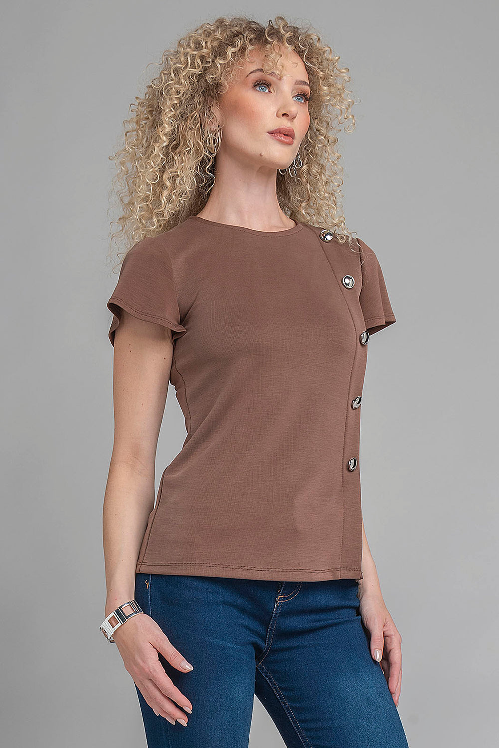 Blusa De Manga Corta Con Botones Al Costado