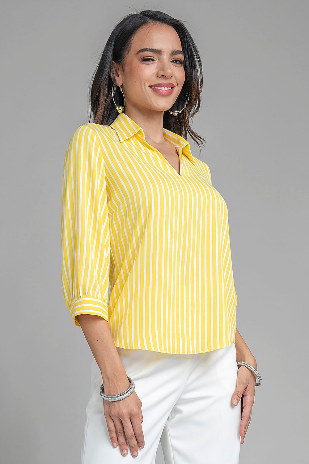 Blusa De Rayas Con Cuello Camisero
