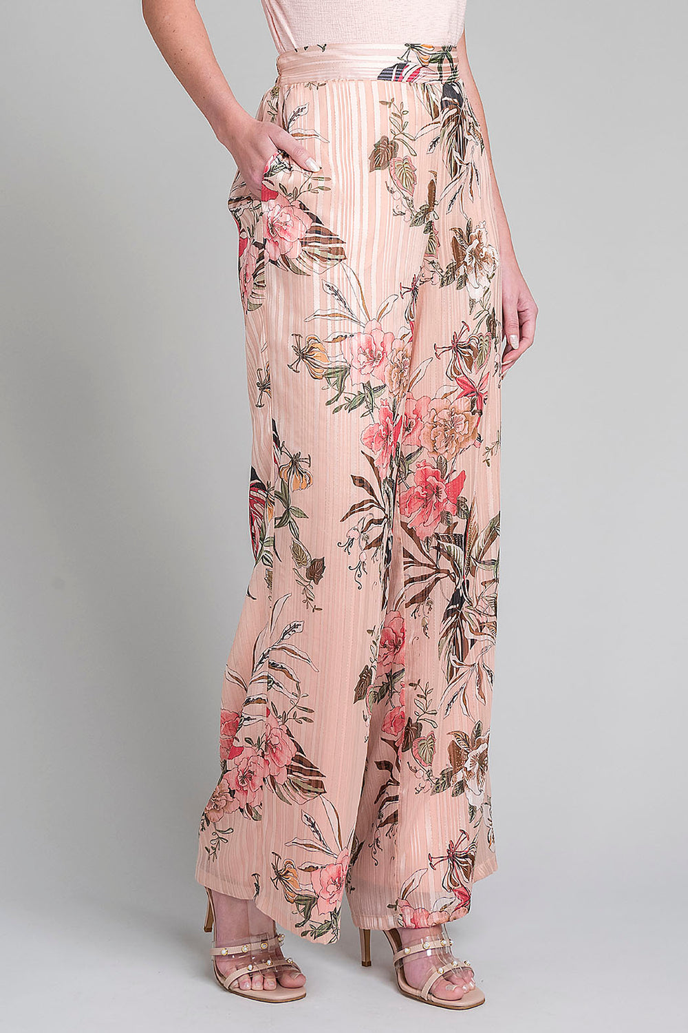 Pantalon Recto Con Estampado De Flores
