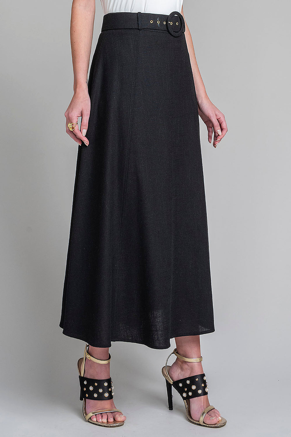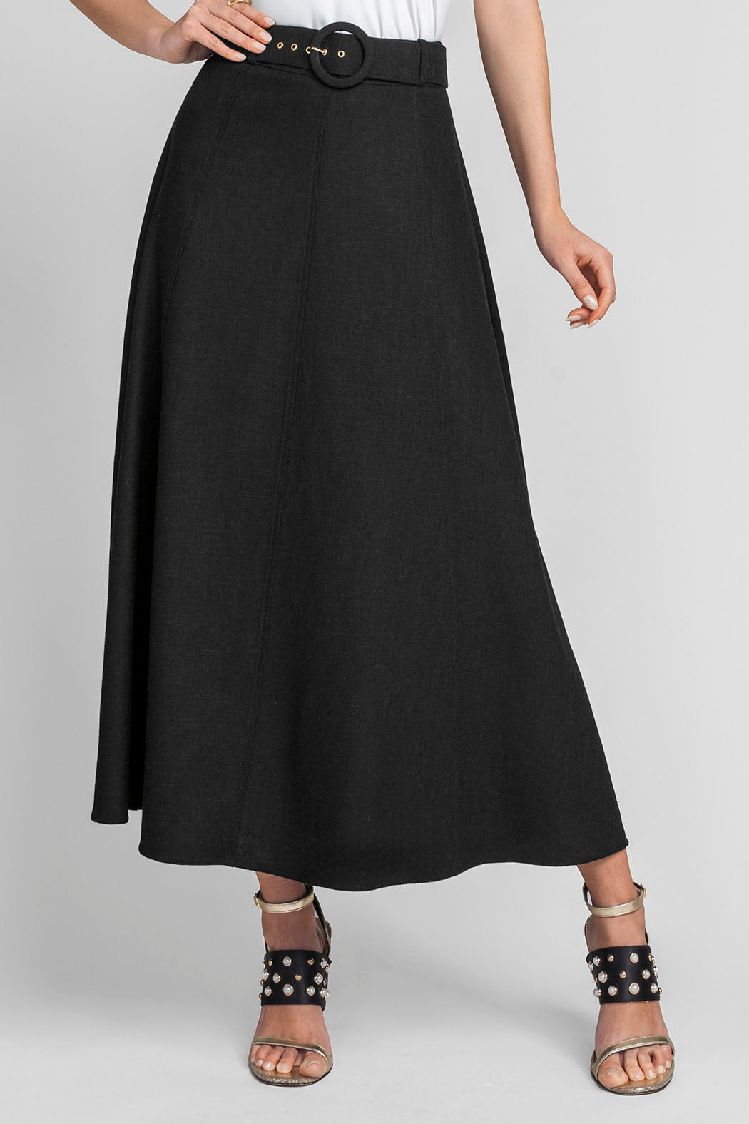Falda Larga Lisa Con Cinturon