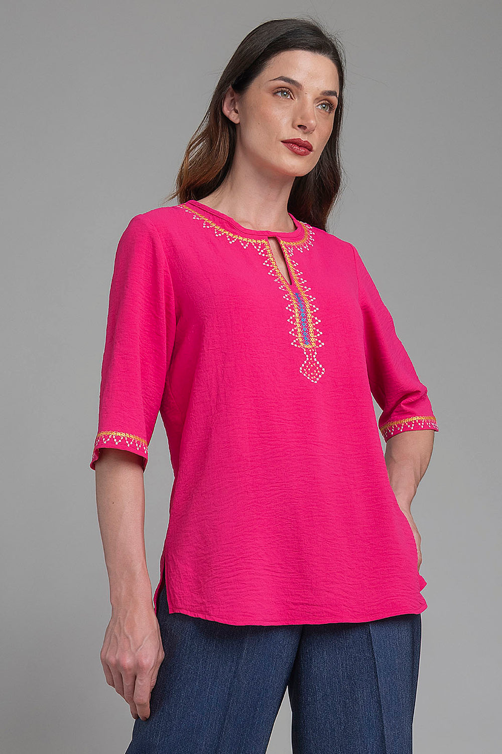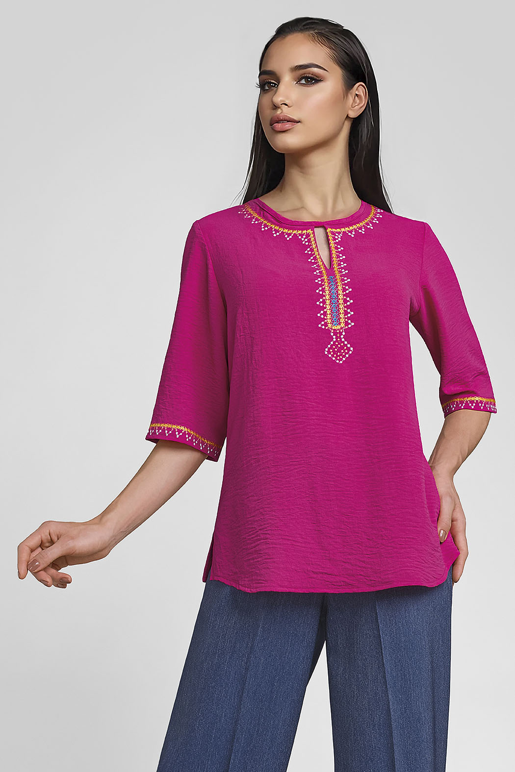 Blusa Con Manga 3/4 Y Detalles Bordados