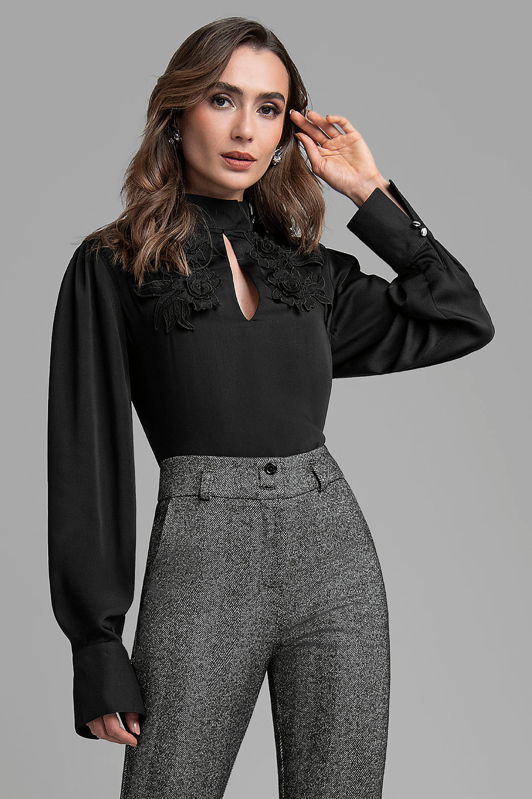 Blusa Lisa De Manga Larga Y Cuello Alto