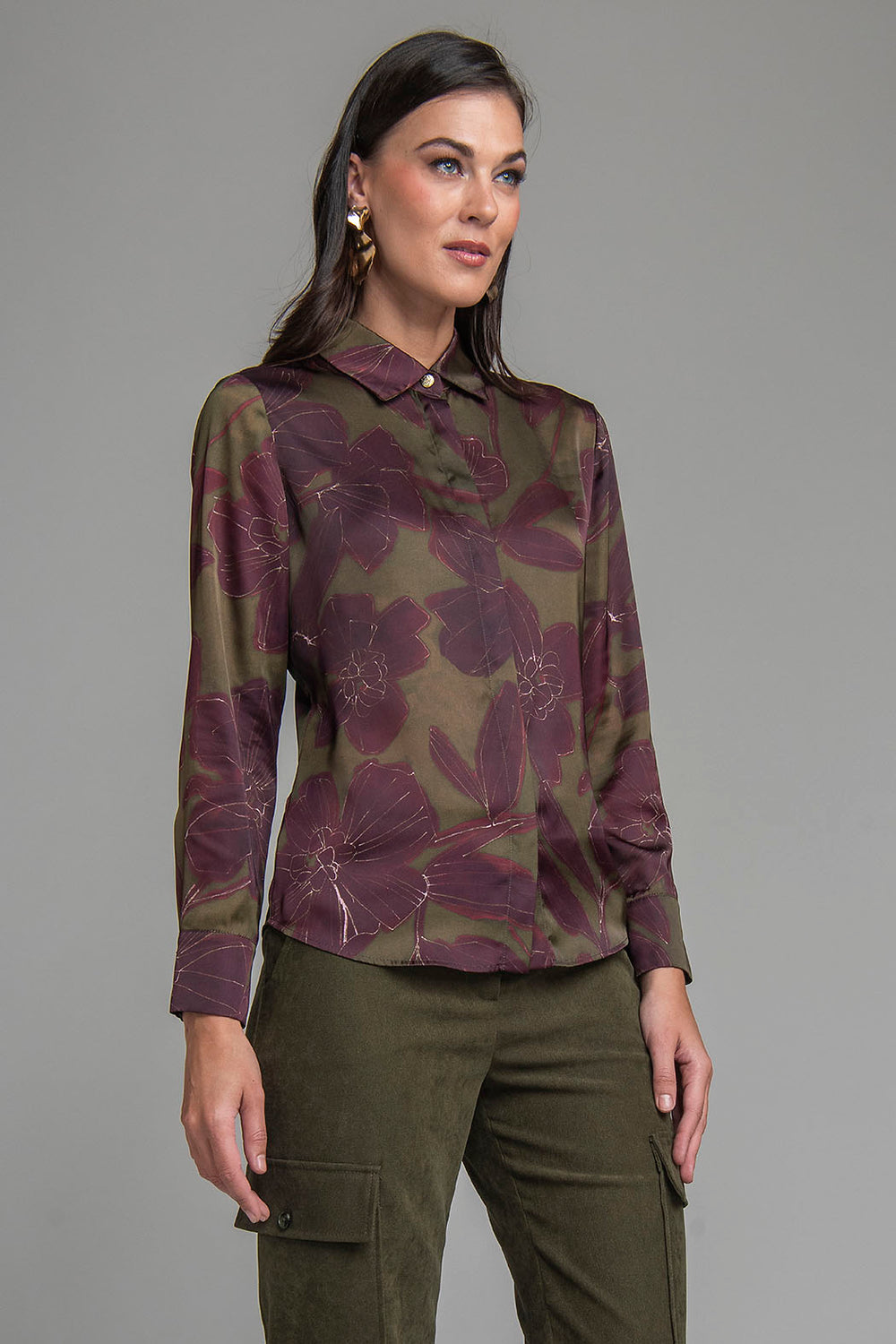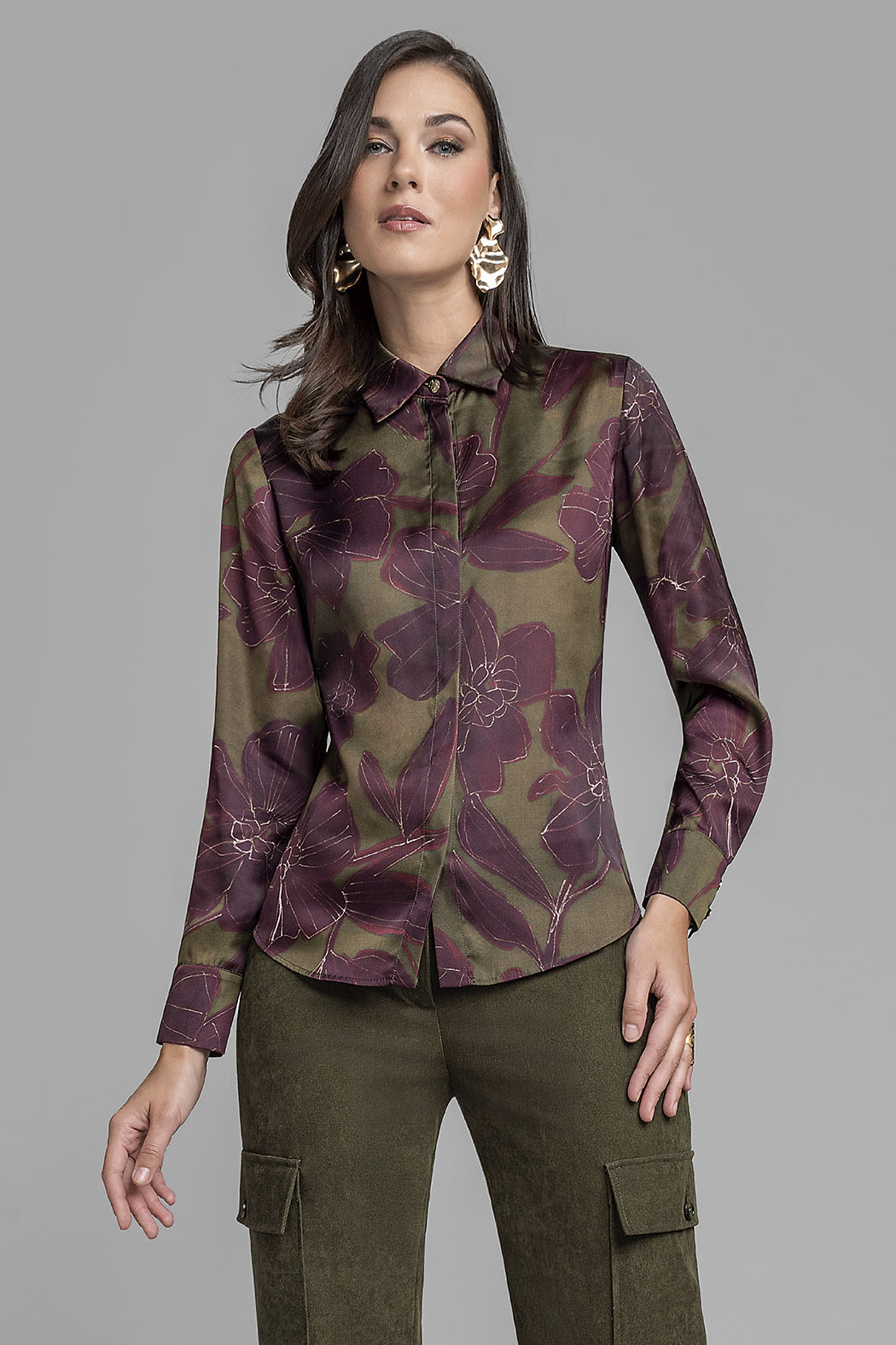 Blusa Con Estampado En Cuello, Puños Y Bajo