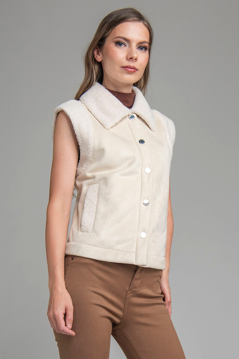 Chaleco De Borrega Con Botones Al Frente