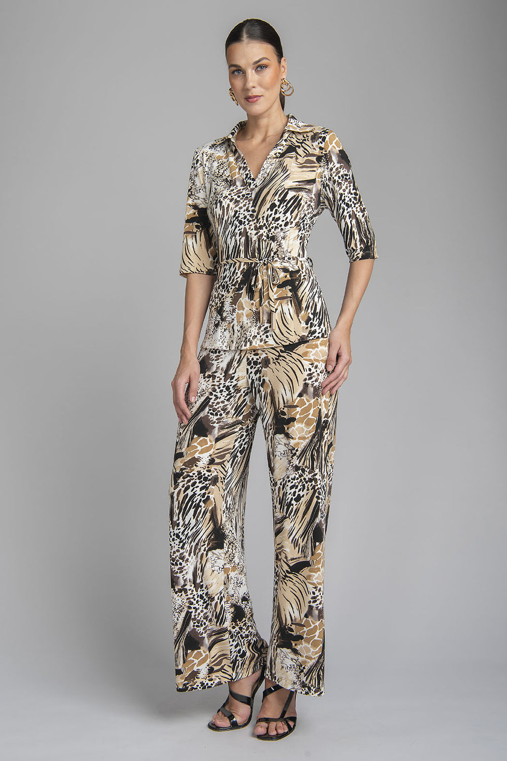 Conjunto De Pantalon Con Blusa Estampado Y Cinturon