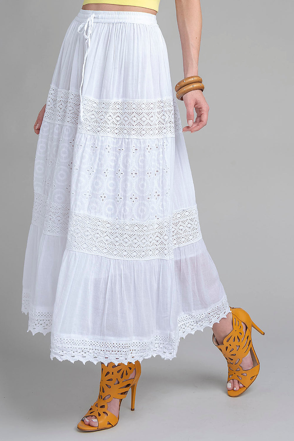 Falda Larga Con Tira Bordada