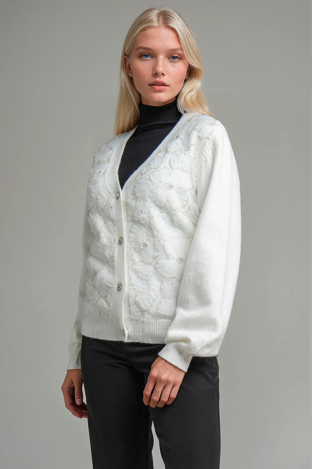 Sueter De Punto Con Flores Bordadas
