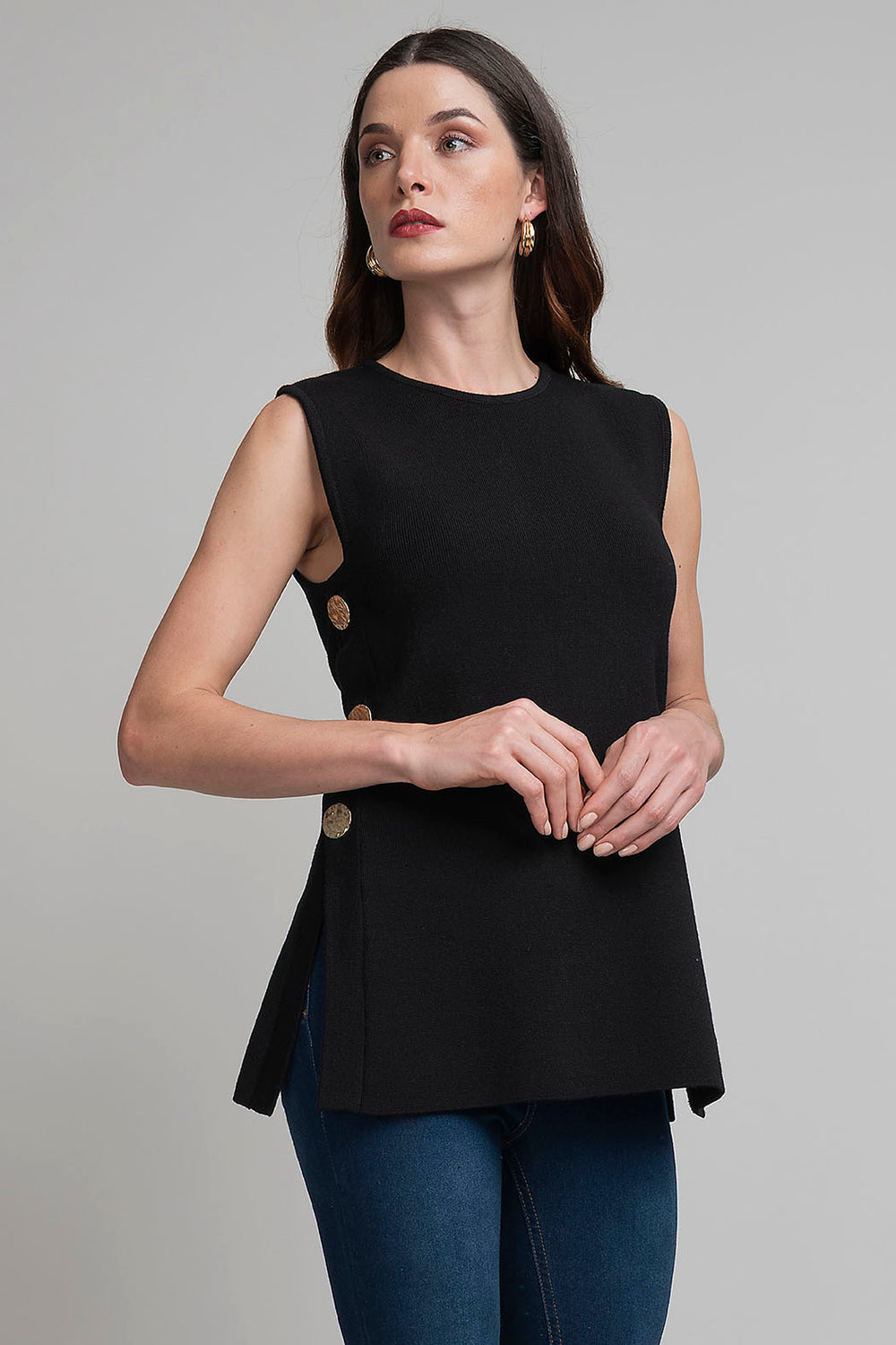 Chaleco Con Botones Dorados En Laterales