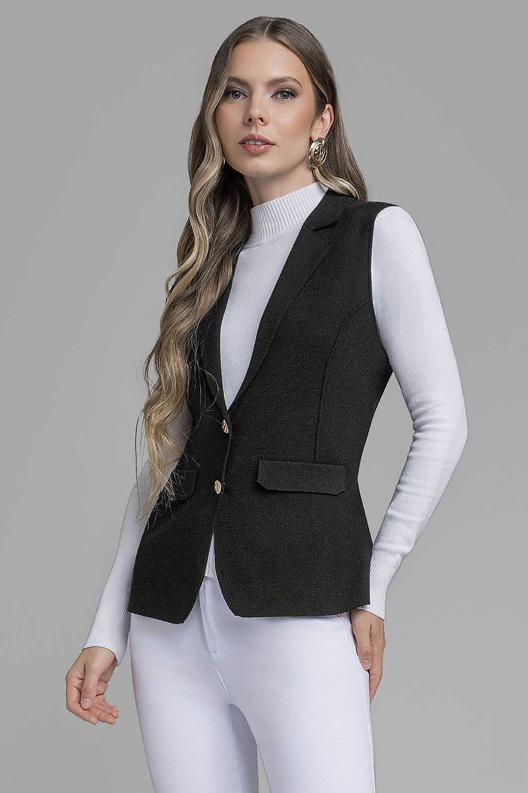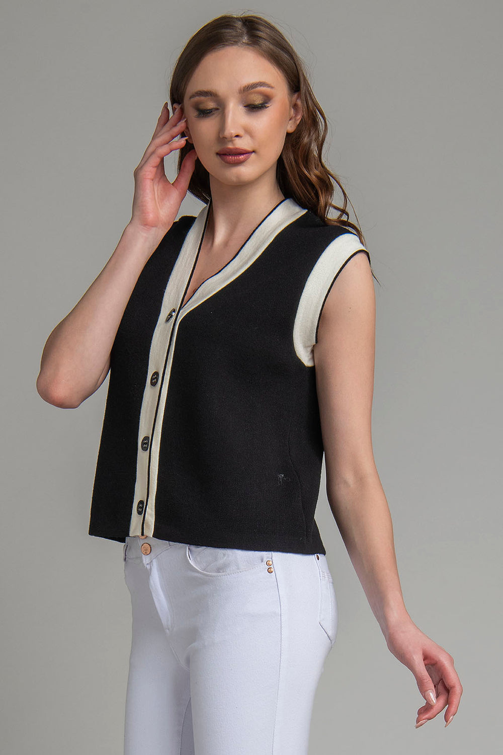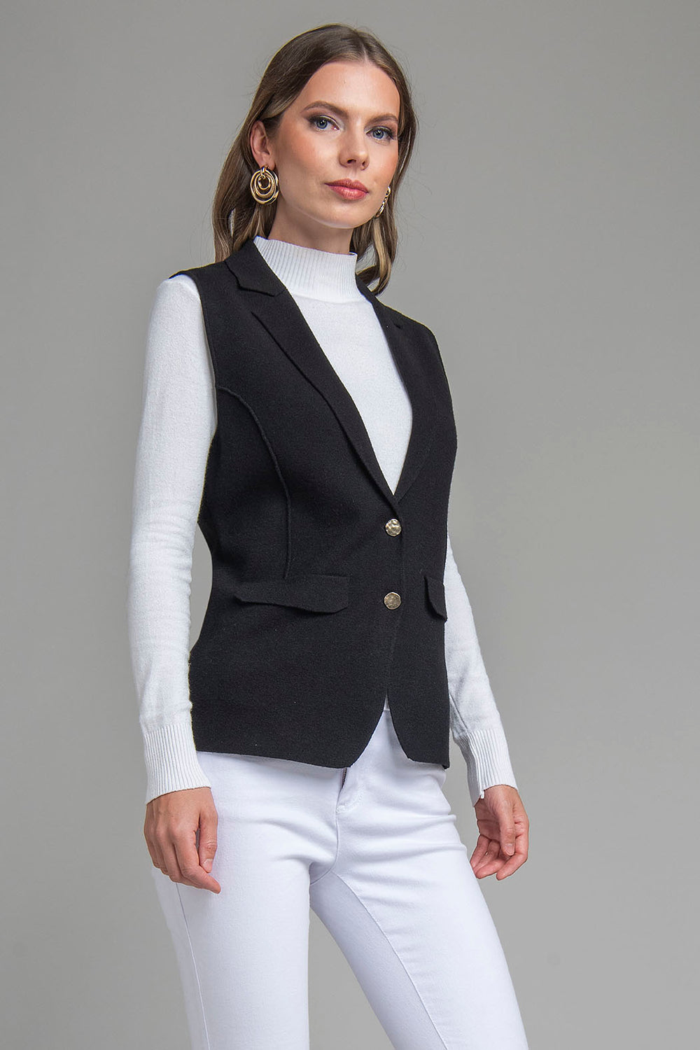 Blusa De Punto Con Manga Corta Y Cuello Alto