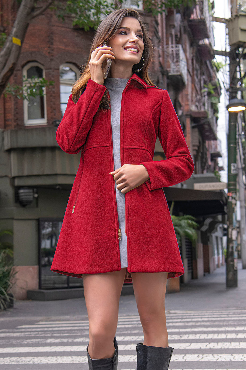 Chaleco Largo Con Solapa Y Broche Al Frente