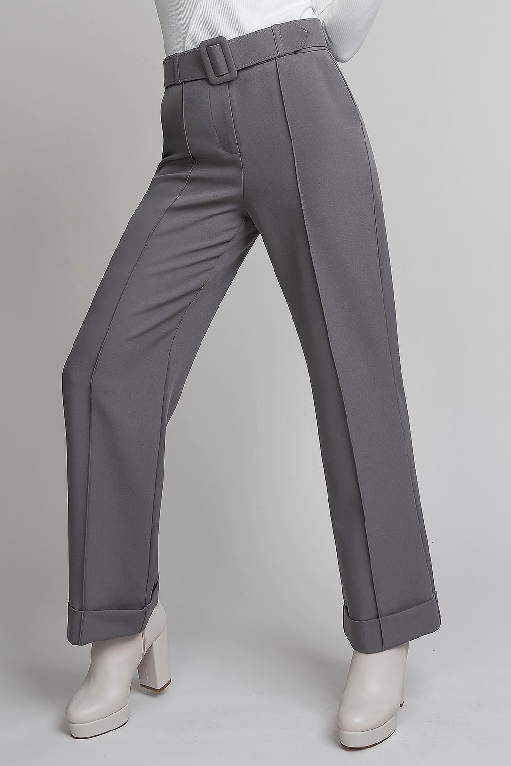 Pantalon De Gamusa Corte Recto Con Cinturon