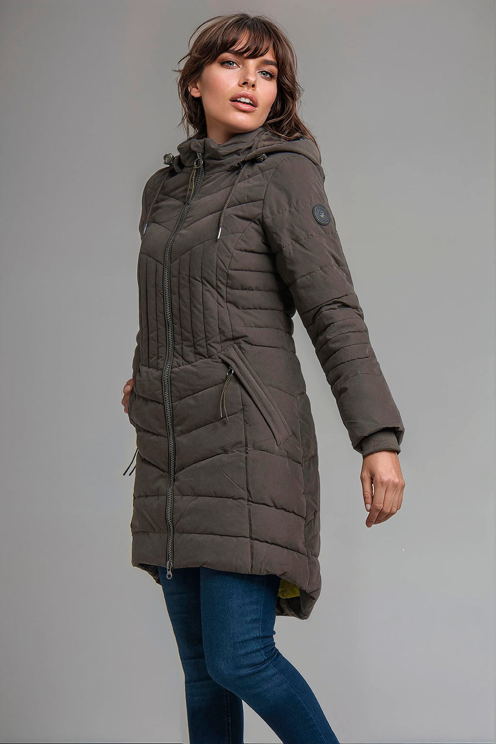 Chamarra Larga Capitonada Con Capucha Desmontable
