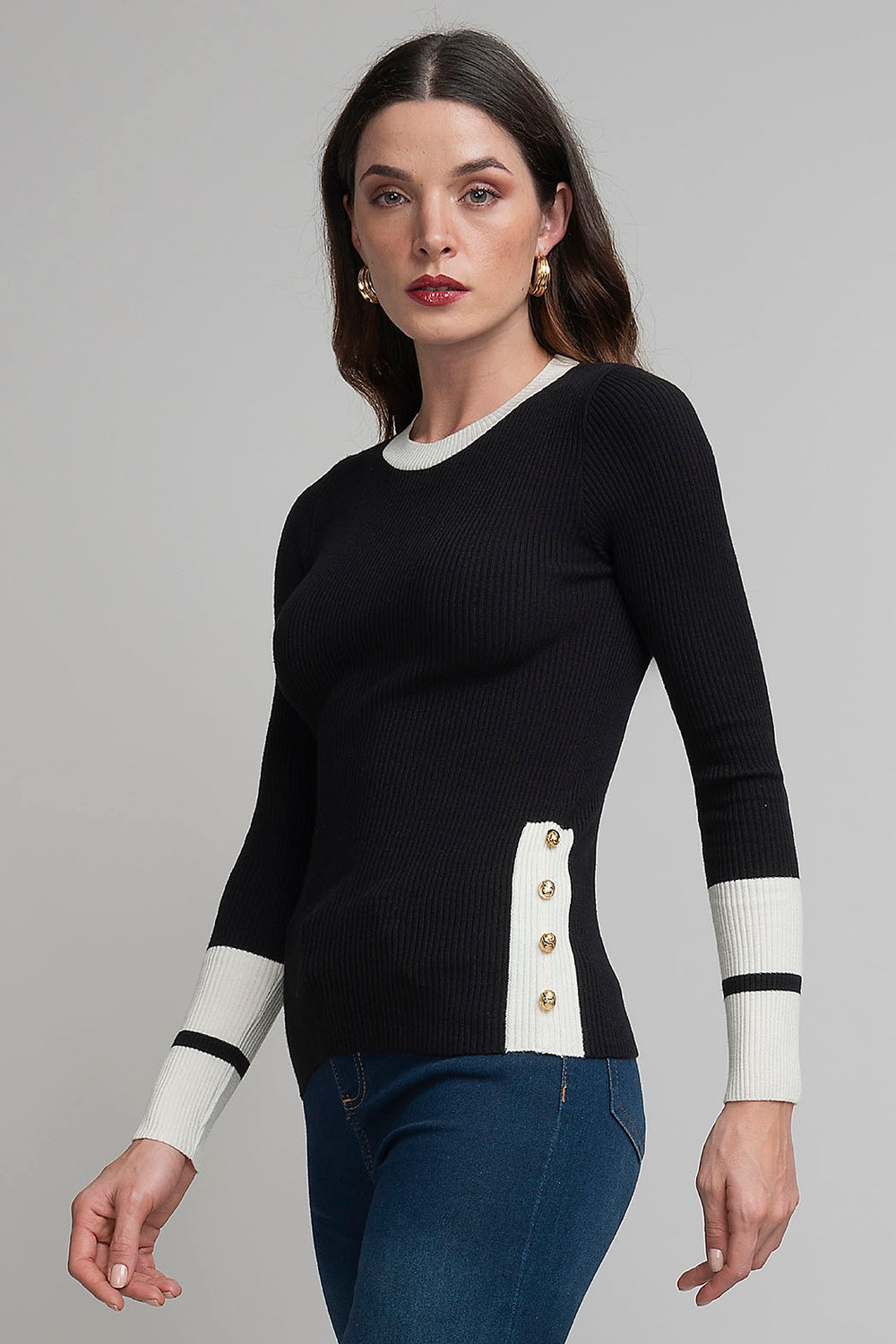 Blusa Lisa De Manga 3/4 Y Detalles De Brillos En Cuello