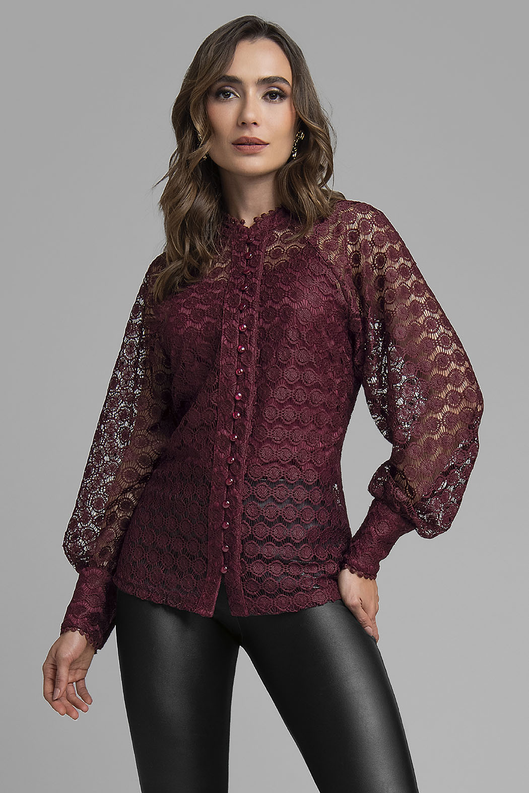 Blusa De Encaje Con Manga Larga