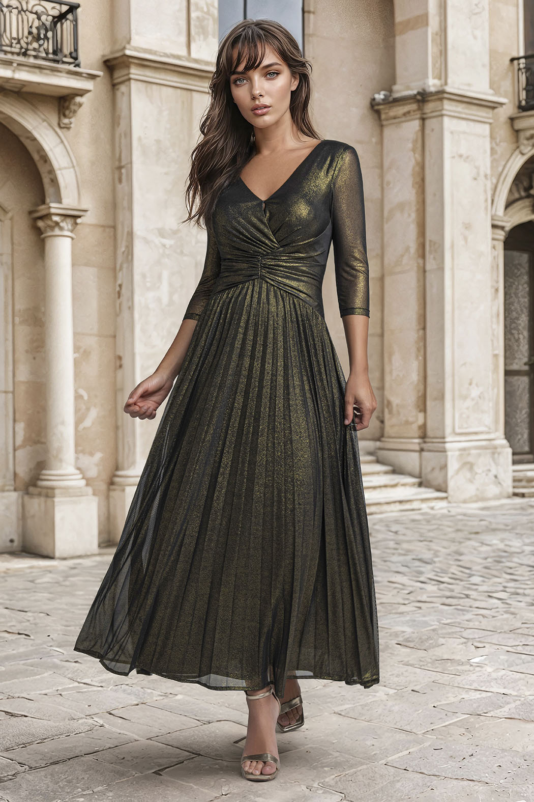 Vestido Manga 3/4 Y Escote En V