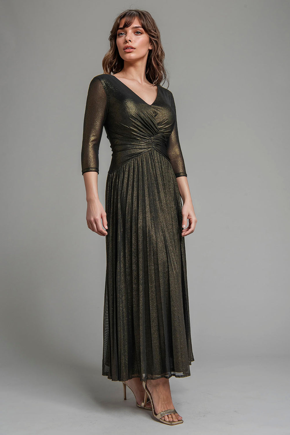 Vestido De Manga Larga Con Brillos