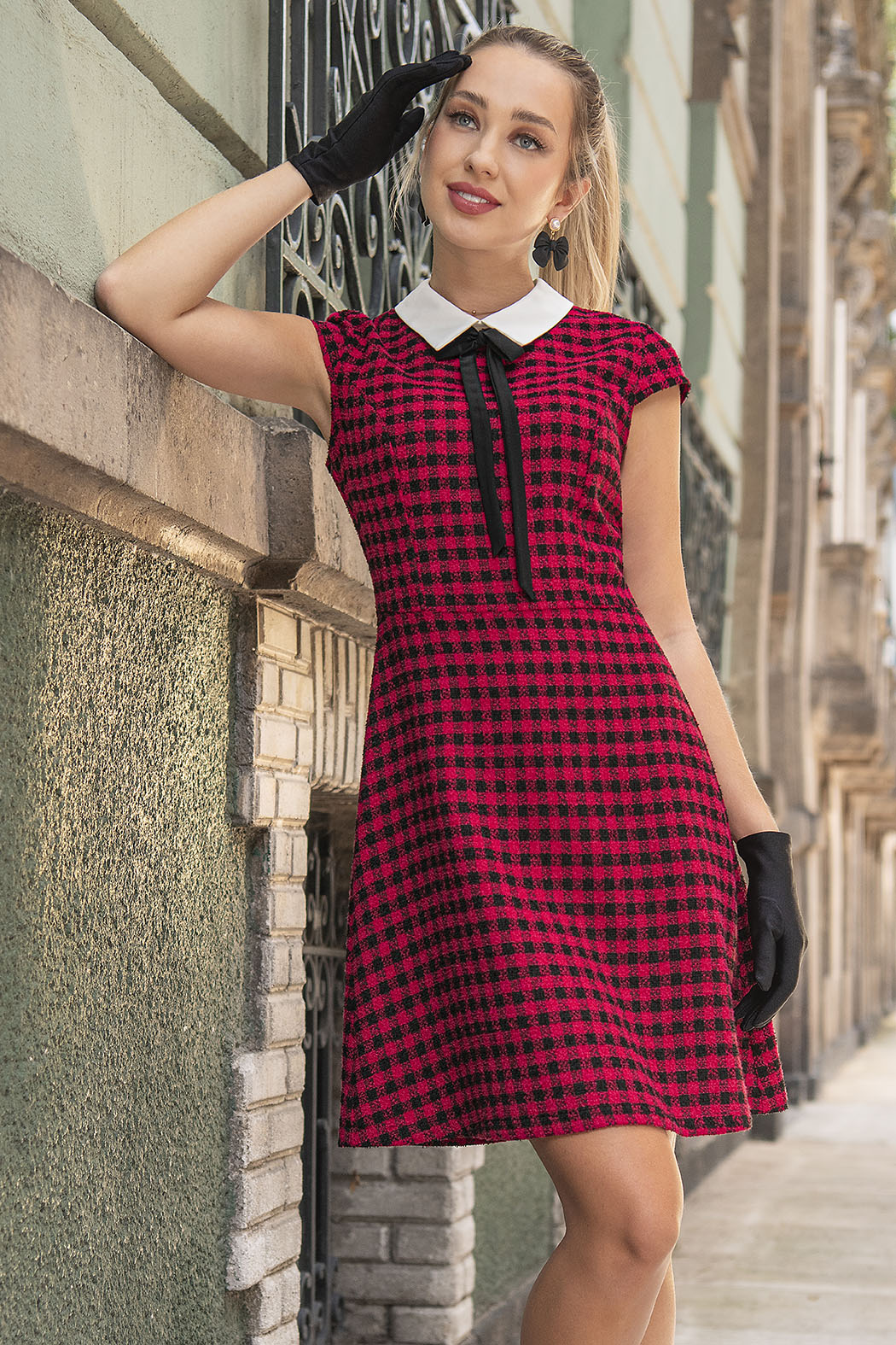 Vestido De Cuadros Con Manga Corta