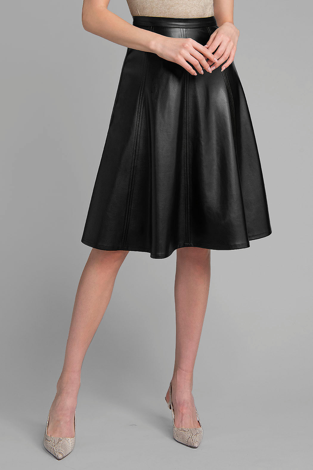 Falda Larga De Piel Corte Circular
