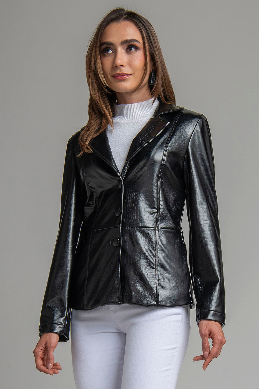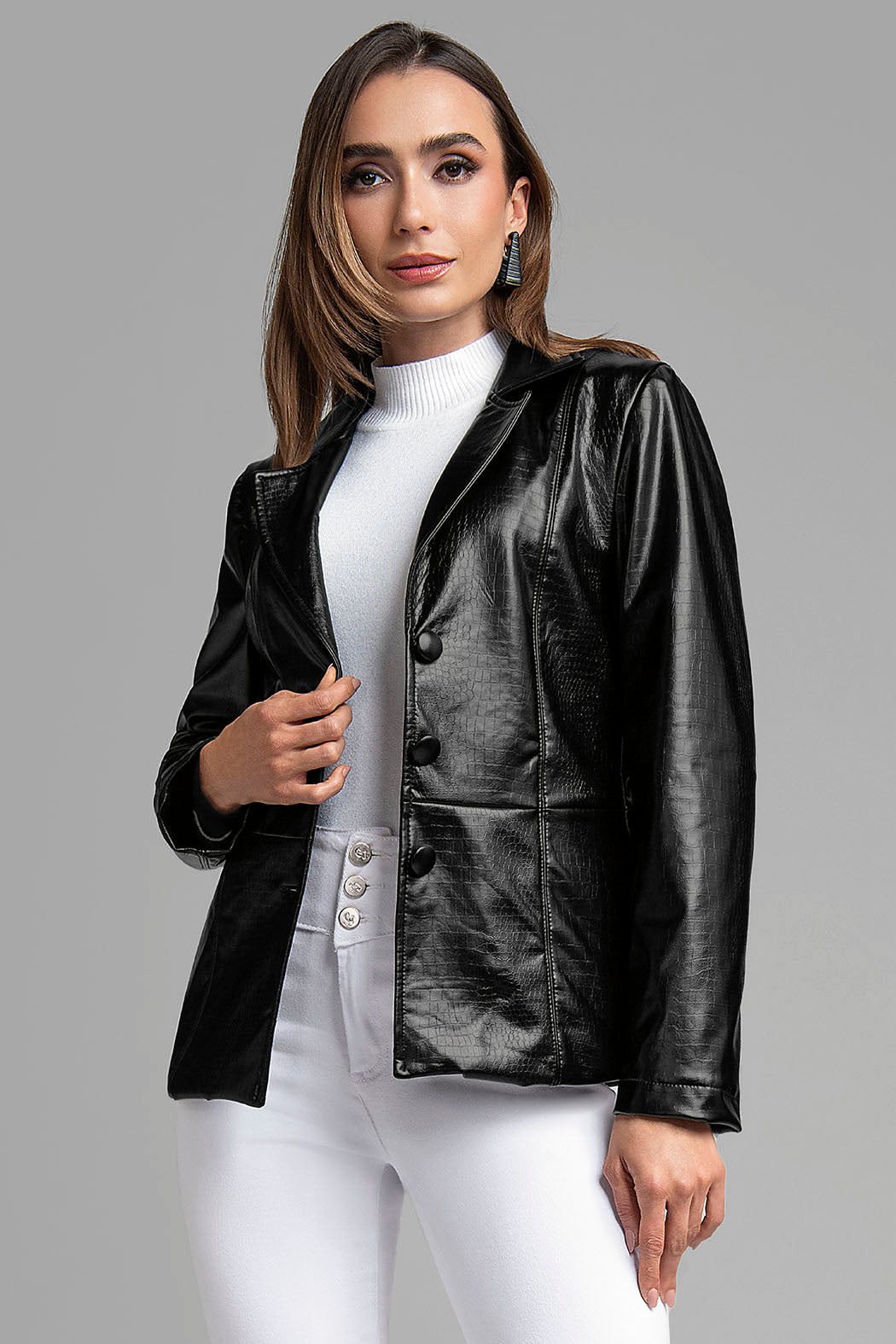 Chamarra De Piel Con Botones Al Frente