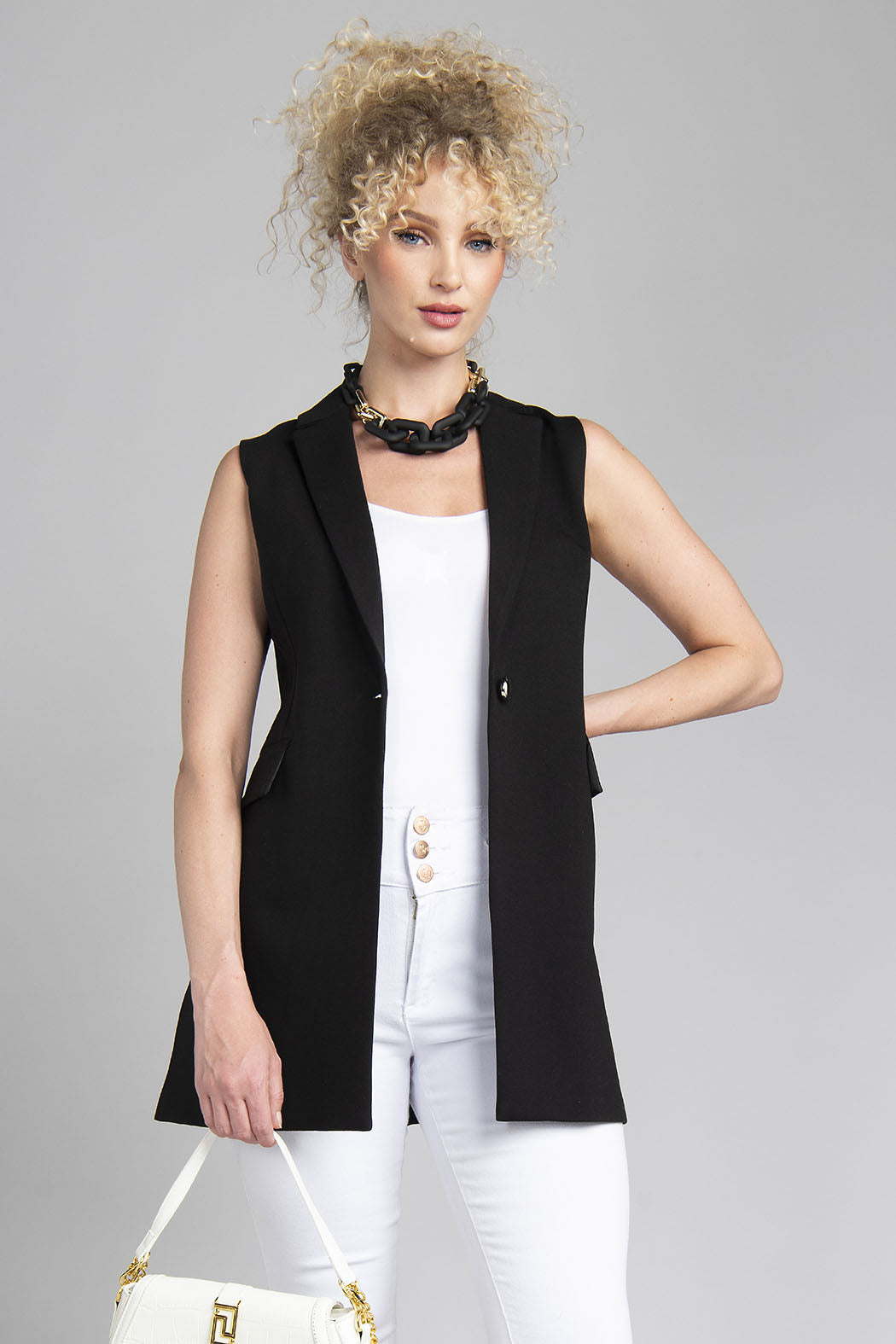 Chaleco Largo Con Solapa Y Boton Al Frente