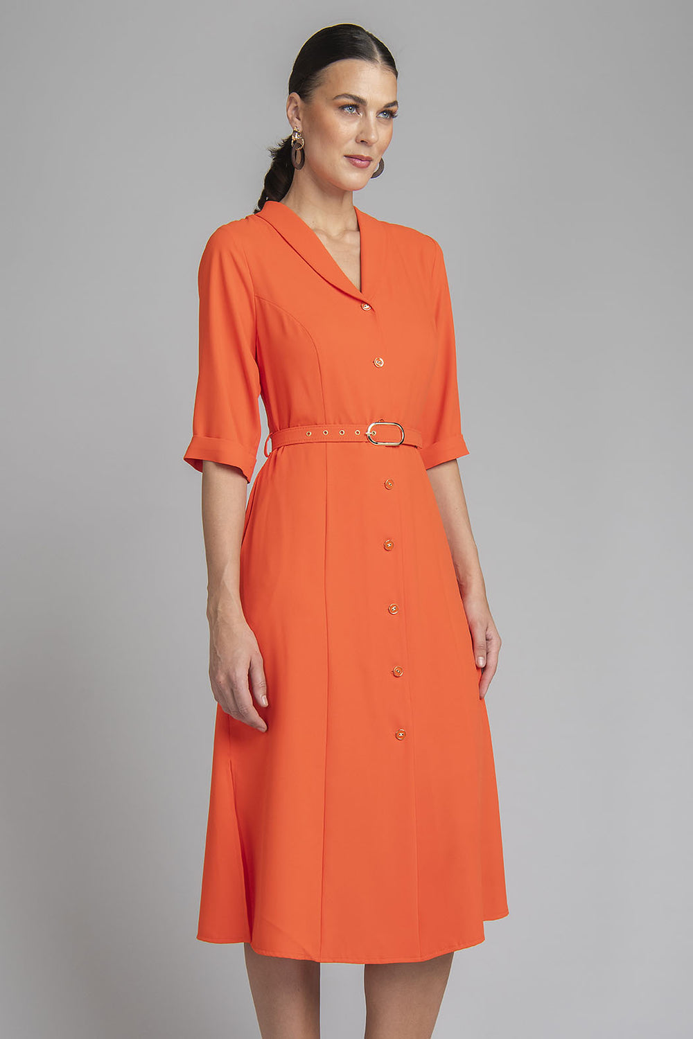 Vestido Liso Largo De Manga 3/4 Botones Al Frente Cinturon Y Abertura En Costados