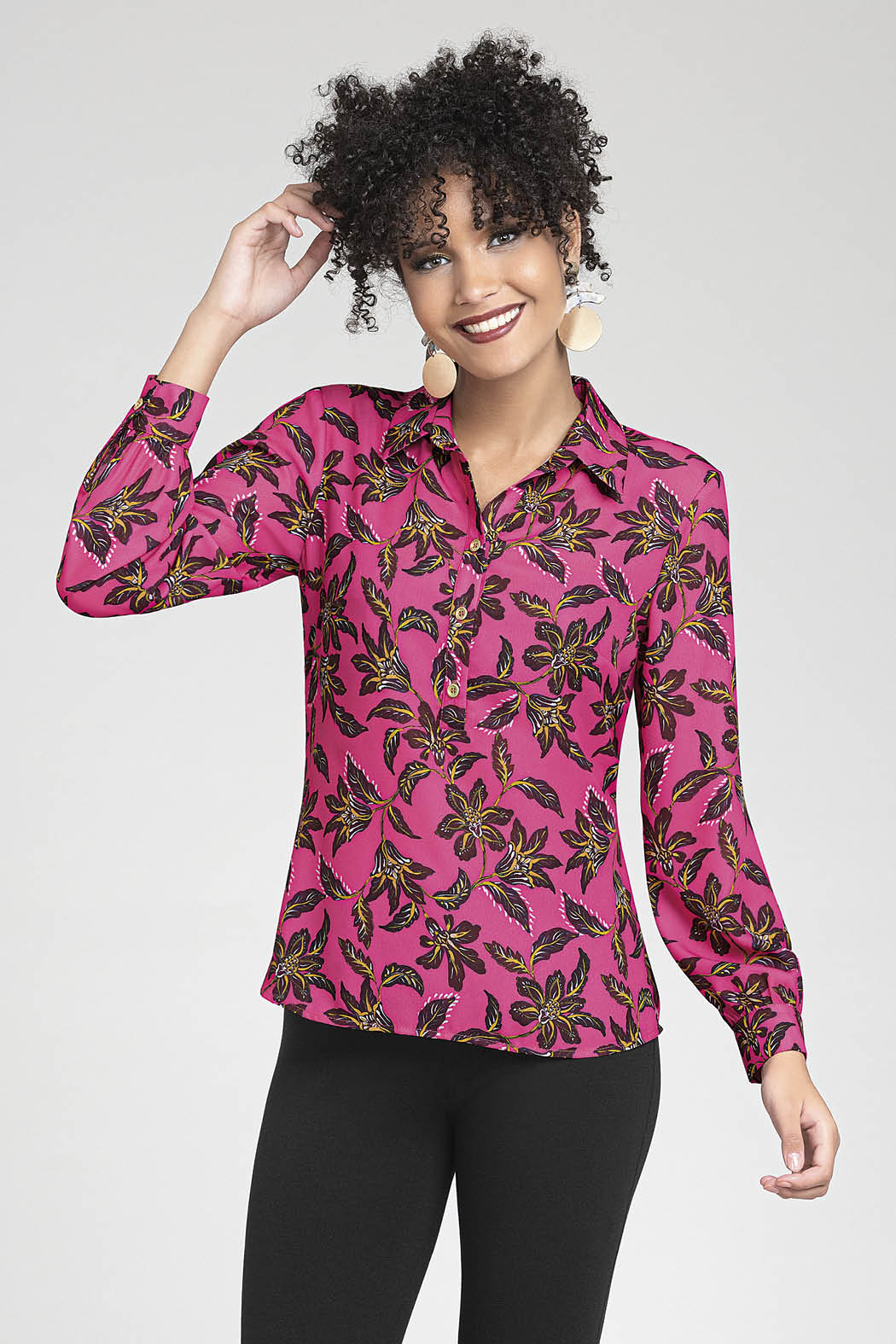 Blusa Camisera Con Estampado De Flores