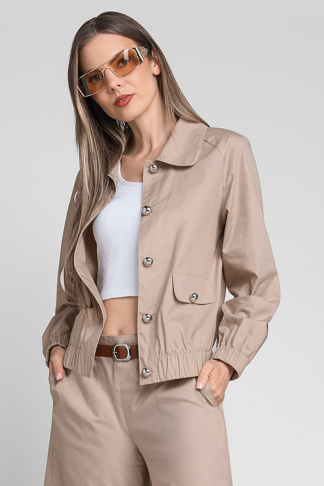 Chamarra Lisa Con Resorte En Cintura