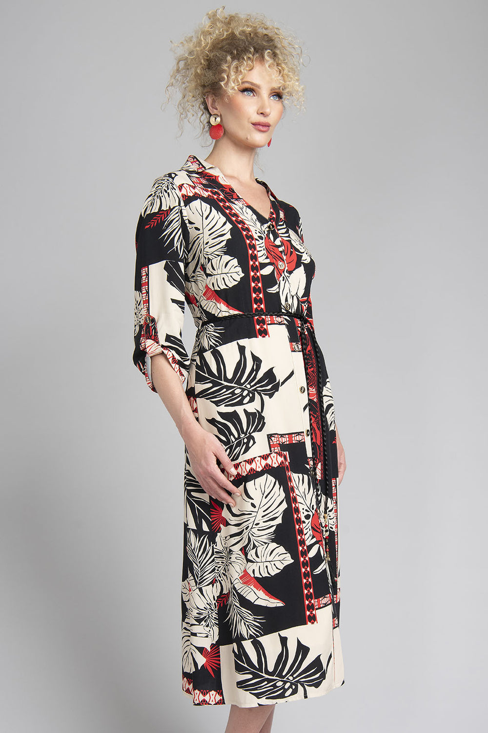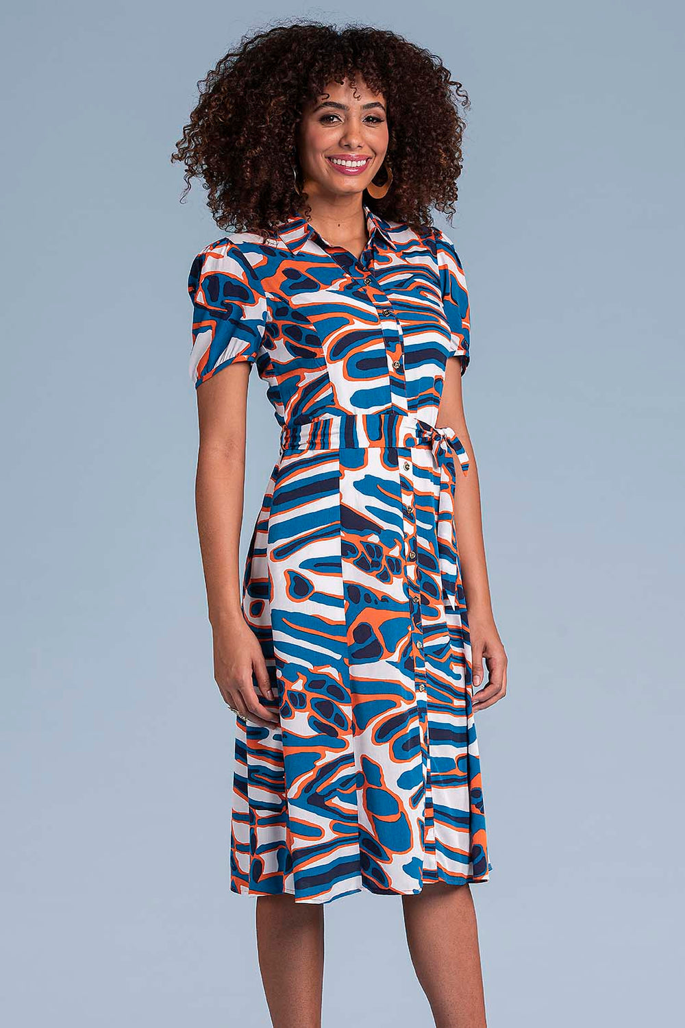 Vestido Camisero Con Estampado Y Cinturon
