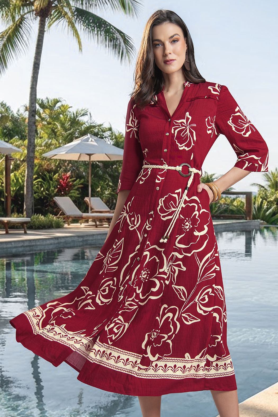 Vestido Estampado Con Manga 3/4