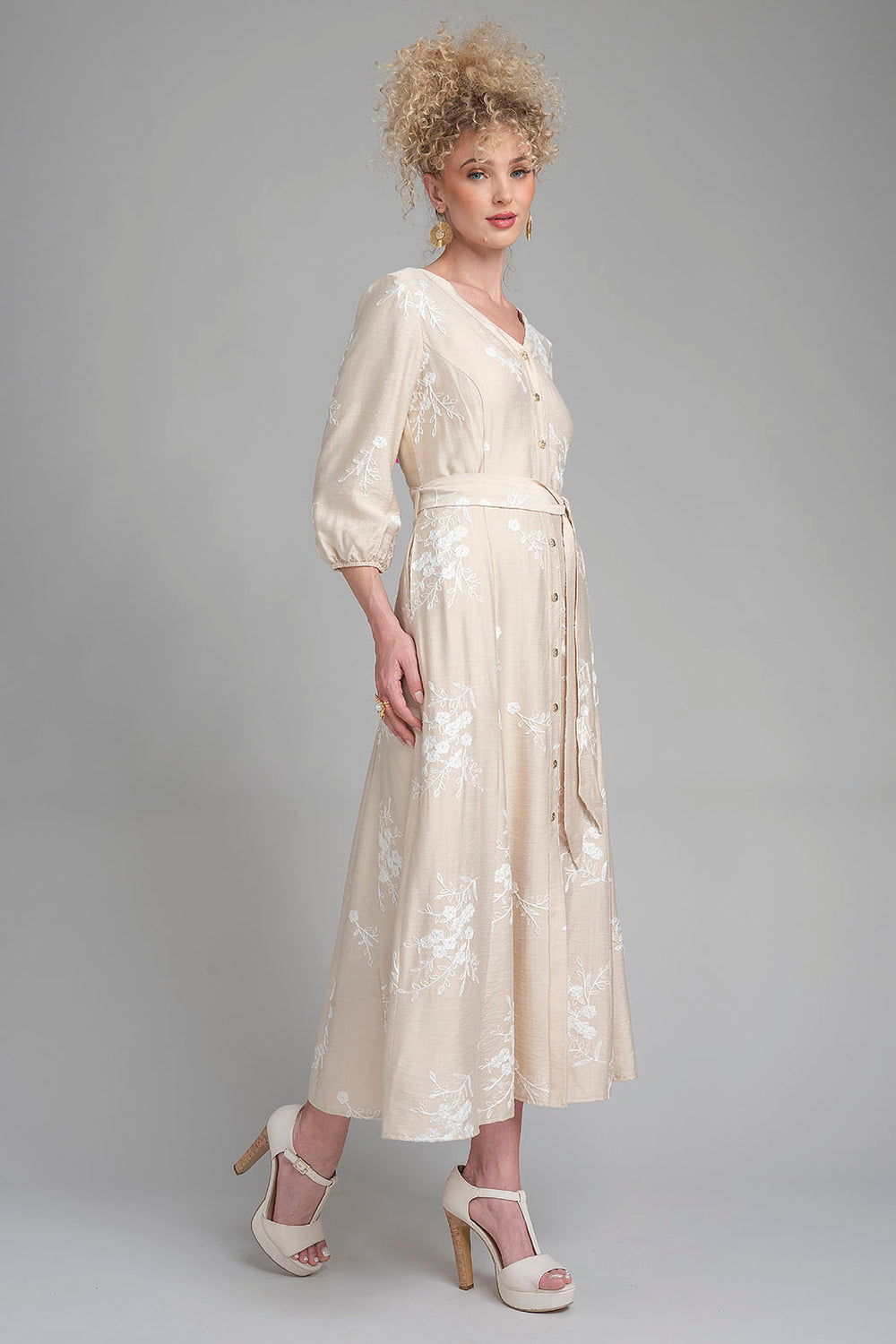 Maxi Vestido De Manga Larga Con Flores Bordadas