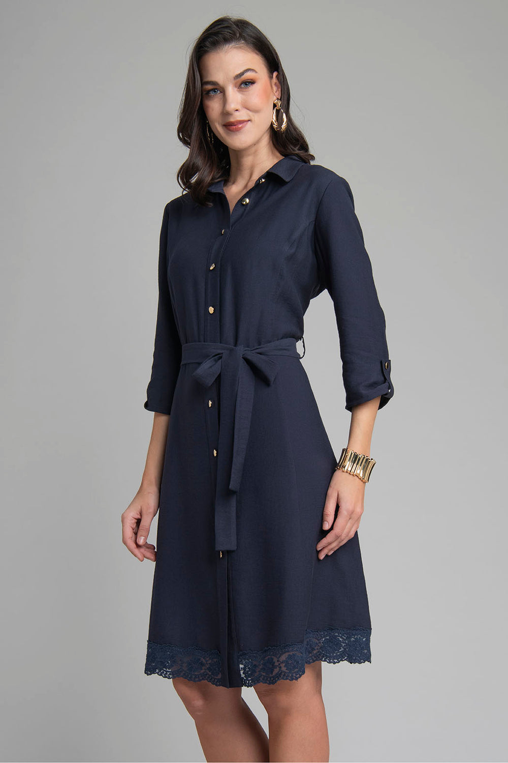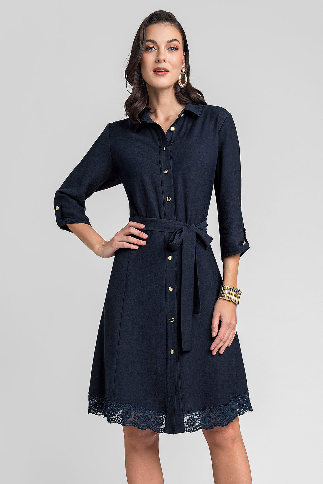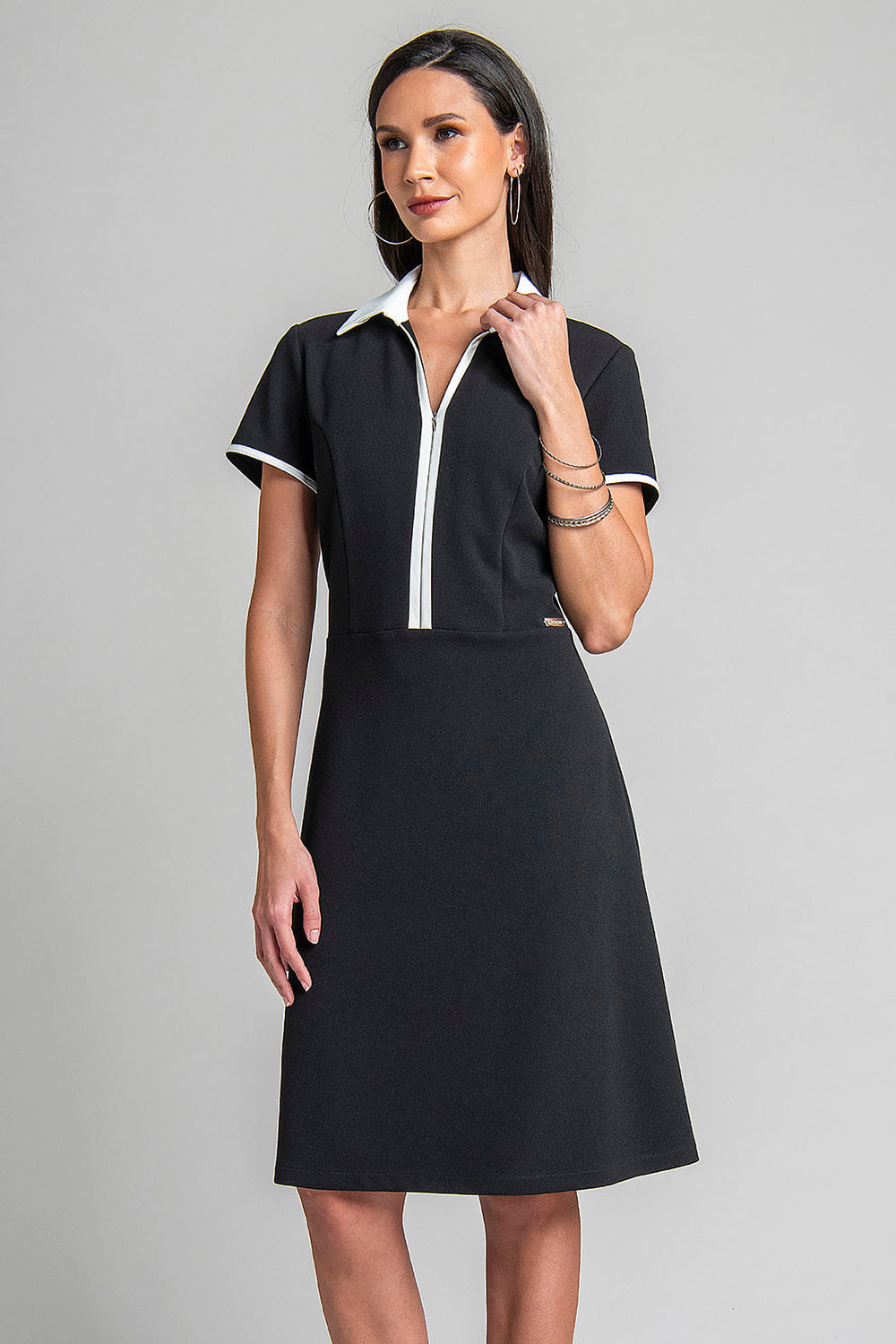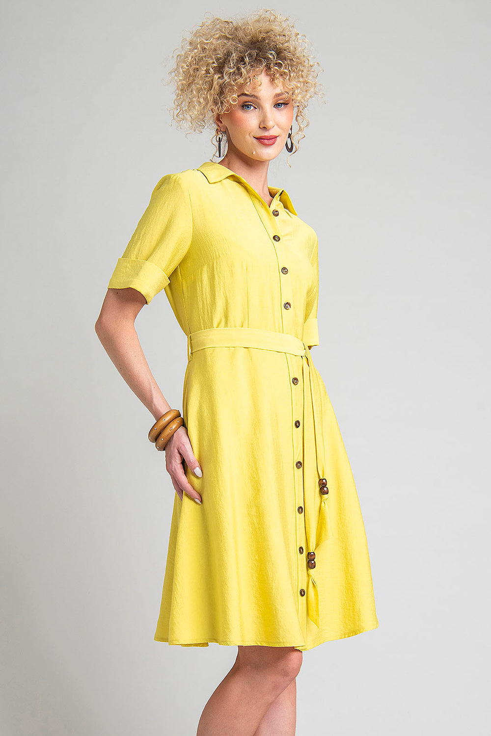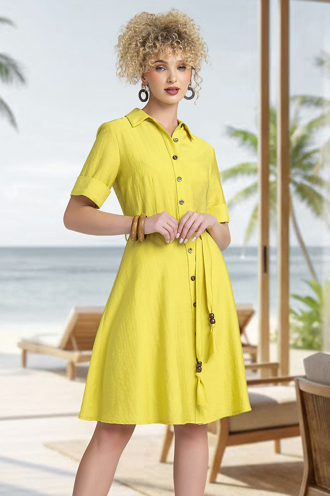 Vestido De Manga Corta Con Cuello Camisero