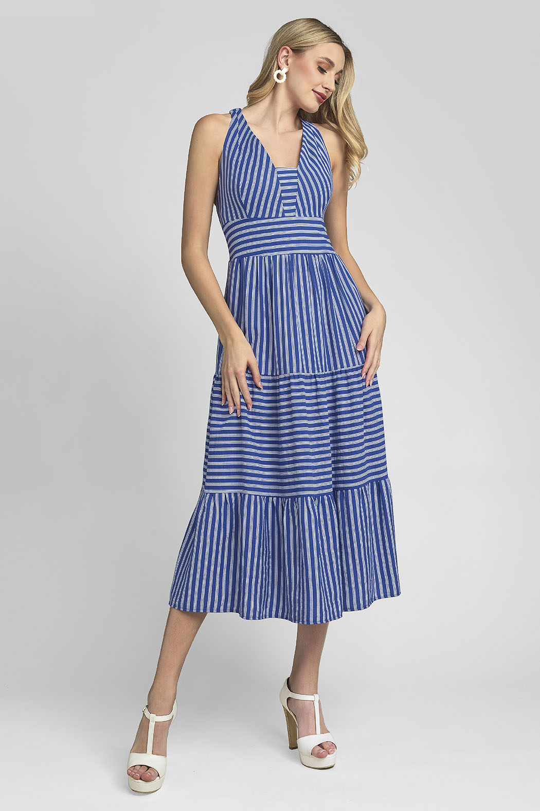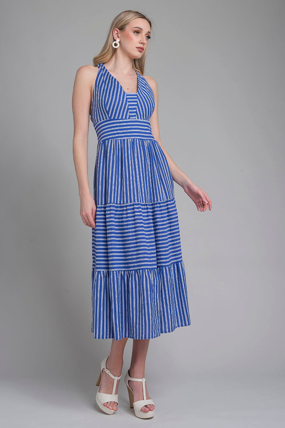 Vestido Largo Sin Mangas Y Estampado De Rayas