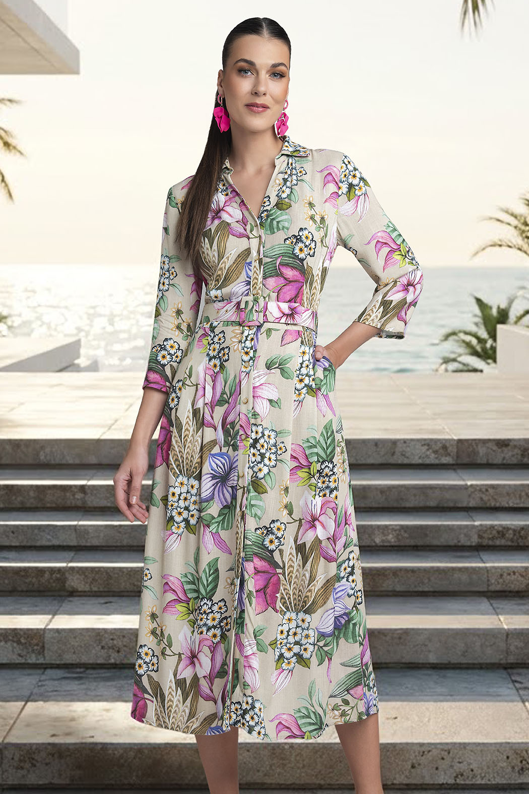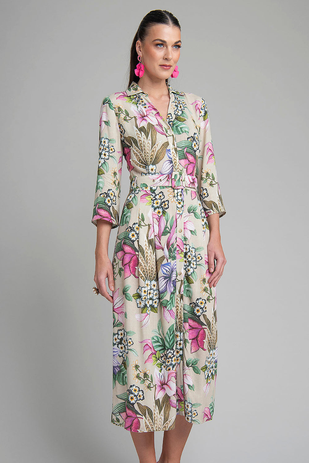 Vestido Camisero Con Estampado Floral